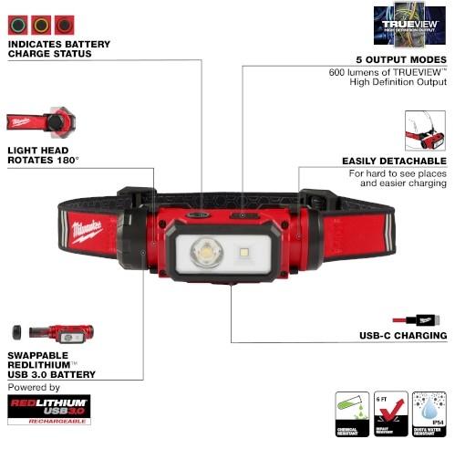 MILWAUKEE* REDLITHIUM USB HARD HAT HEADLAMP