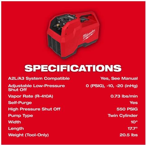 MILWAUKEE M18 BRUSHLESS REFRIGERANT RECOVERY MACHINE